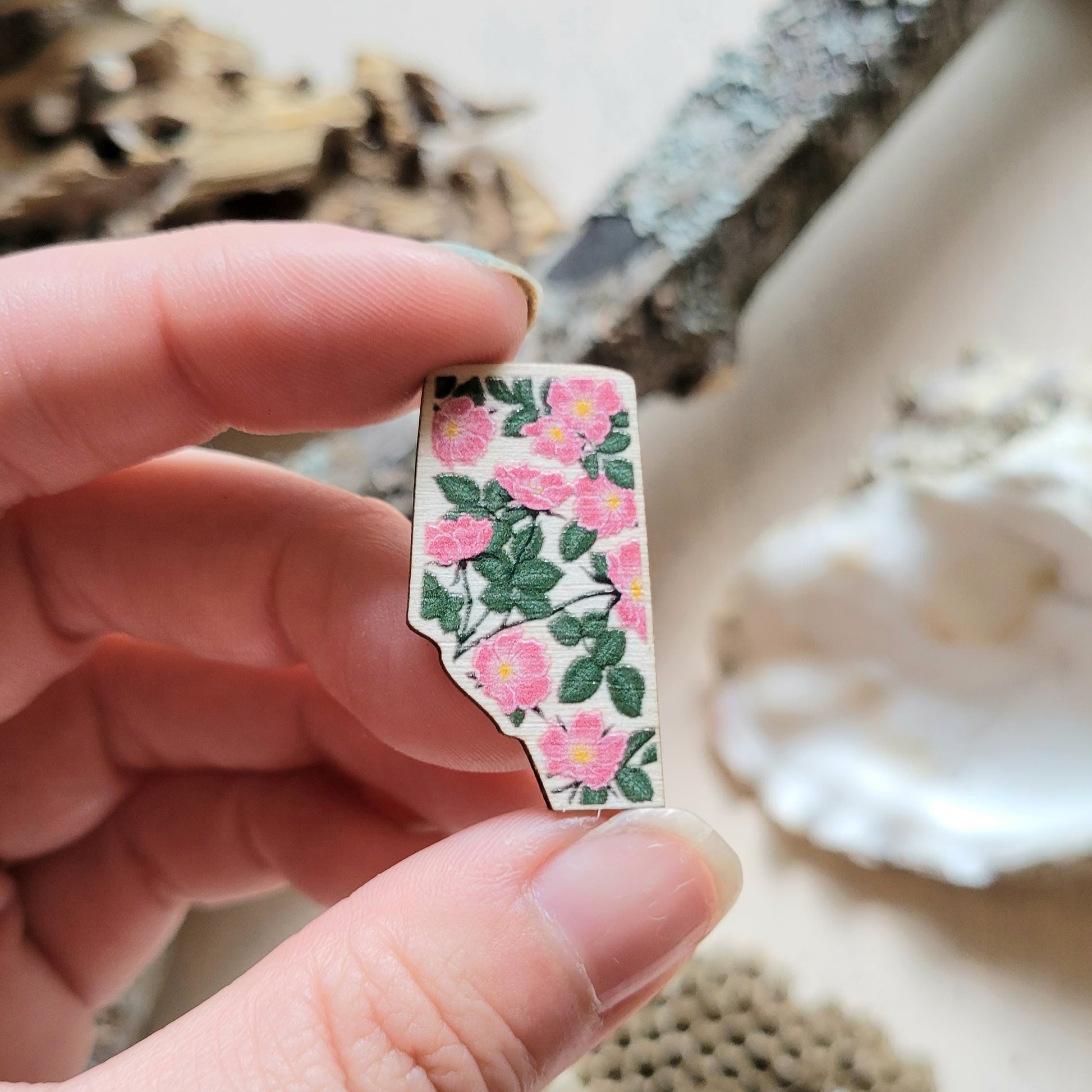 Alberta Floral Wood Pin