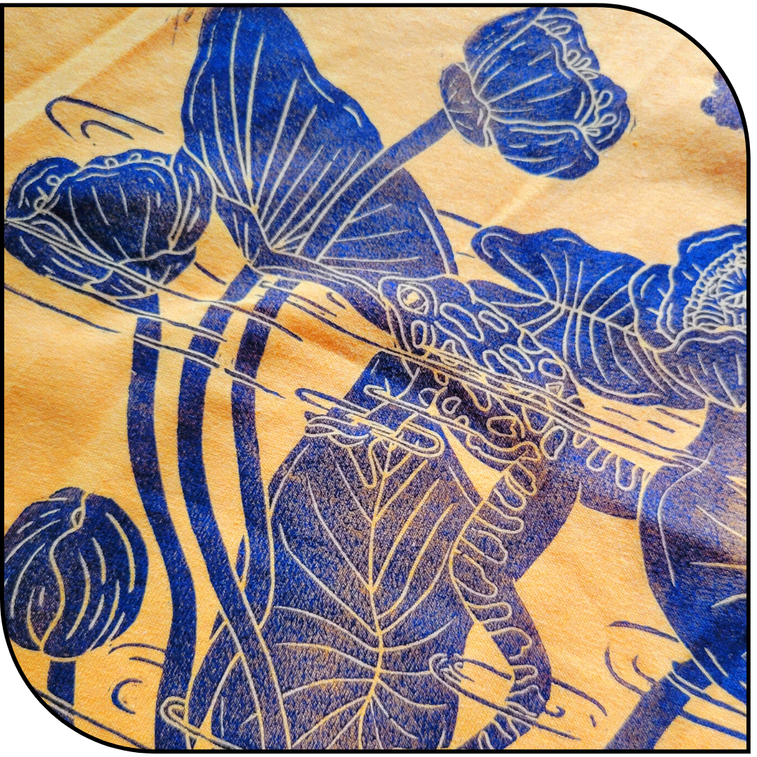 100% cotton gold toned color long sleeve shirt with black frog print. Printed using hand carved lino blocks. Available in sizes s-2xl on hand, if you are interested in additional sizing please email us directly, we would love to make it happen!